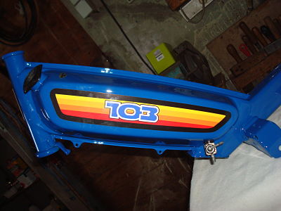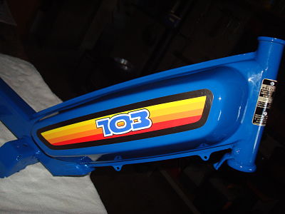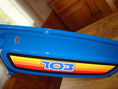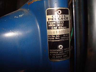 C'est donc un 103 MV2 apparemment de mars 84 (inscription moulé derriere le carter plastique et poinçons dans losanges sur les jantes) acheté en octobre dernier qui est dans son ju, complet avec moteur tournant.