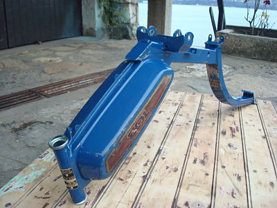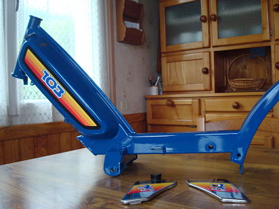 Globalement satisfait du taf effectué, la teinte est nickel et la peinture bien lissée. Juste une ptite coulure qui se verra pas sur la la boite a outils car masquée par le cache chromé et il a peint les deux coupelles ou vient se s'enquiller le tube de fourche… Rolling Eyes