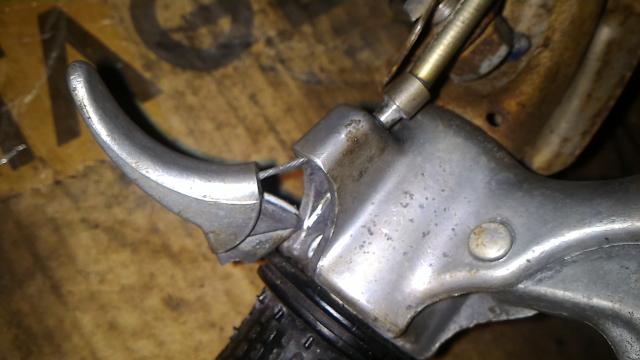 Par contre j'ai fait une bêtise et j'ai vraiment les b....s!!! En faisant un faux pas, j'ai marché sur la poignée gauche du guidon et j'ai cassé net le levier du starter.