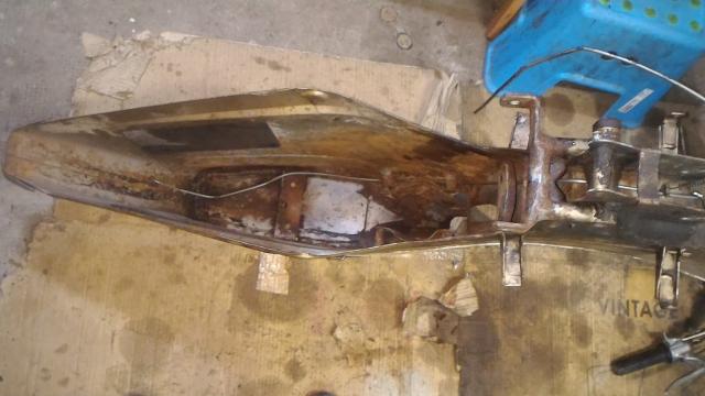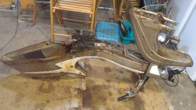 Oui il est vraiment bien attaqué mais contrairement à d'autres mobylettes, j'ai quand même l'impression qu'hormis certaines pièces, sous la rouille ce n'est pas si vilain. La tôle est à nu mais comme c'est de la même couleur, je crois que ce n'est pas si catastrophique. Rien n'est percé.