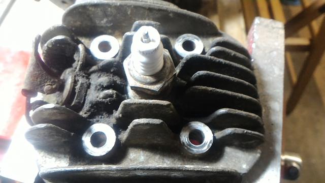 Pour la bougie, peut être en fixant la culasse sur une grosse planche de bois (un bout de ta charpente ?)avec 4 grosses vis et avec une (bonne) clef à bougie, ça devrait venir ...