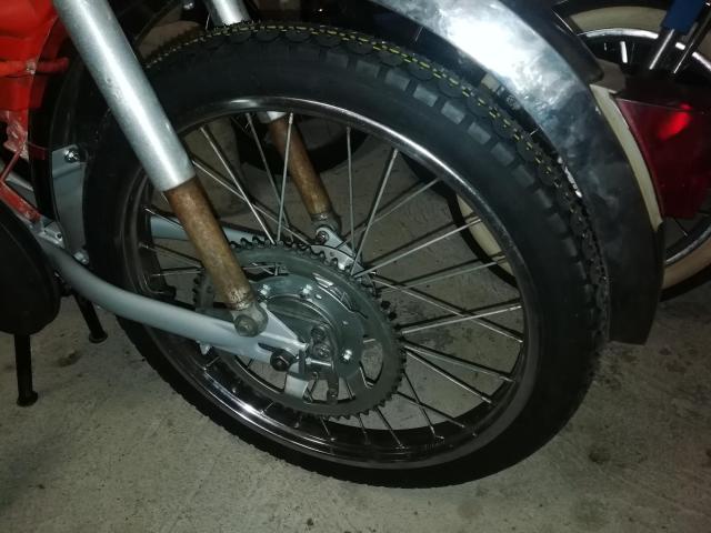 pneus Mitas B4 reçu aujourd'hui, montage à blanc sur la roue arrière. J'aime bien le profile de pneu ,surtout sur le côté mais j'aurai préféré du 2.50 à la place du 2.25. ça va le faire quand même, reste plus qu'à trouver une jante avant...