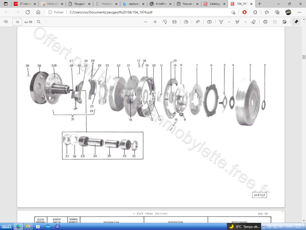 J'ai voulu monter l'embrayage du 104, impossible d'enclencher l'embrayage dans la cloche. Après inspection des deux embrayage, ils sont différent : rondelle plate sur le gt10, rondelle épaulée sur le 104, méplat de 7 mm sur le vilo du gt10 et 10 mm sur le 104.