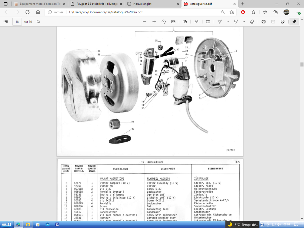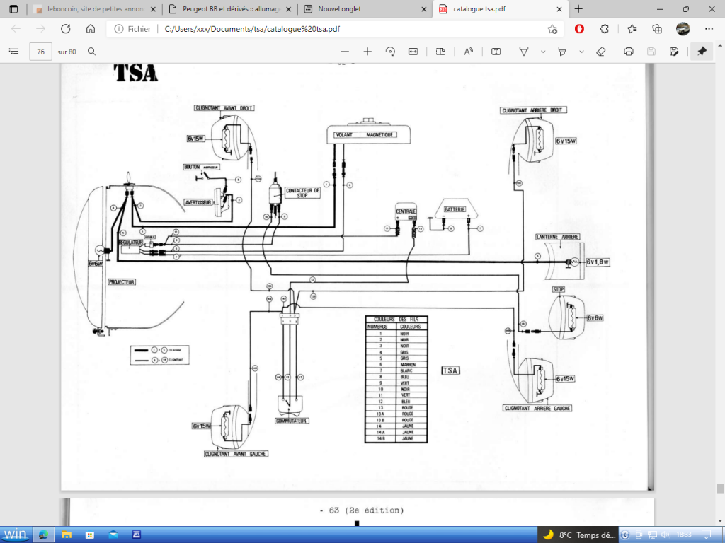 D'origine, ton TSA a un allumage a rupteur comprenant une bobine éclairage 6v a 2 sorties alimentant 2 circuits distinct: