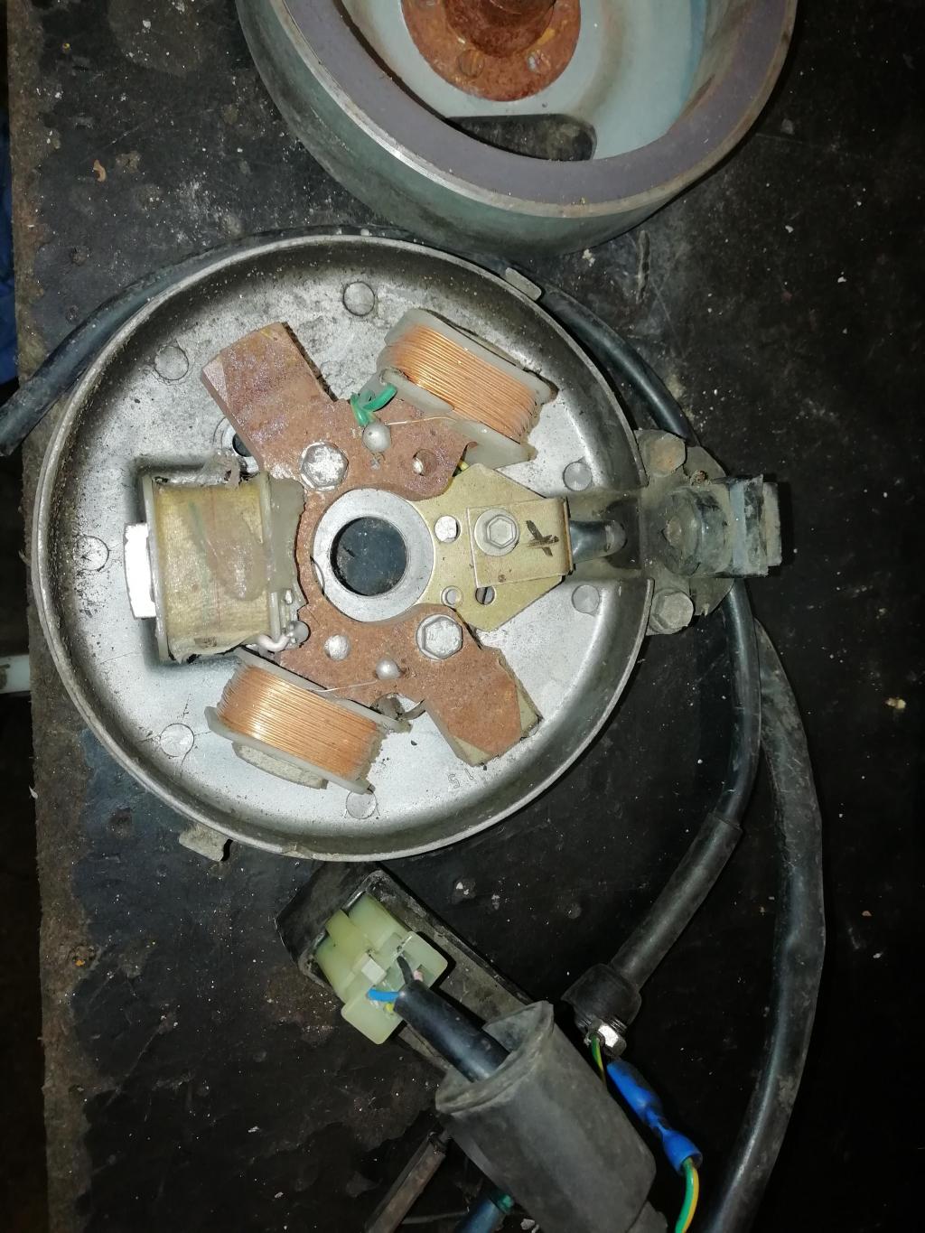 sur cet allumage il y a deux bobines , je ne parle pas de celle de l'allumage. La bobine 15 w pour les feux et une de 10 w pour klaxon et feu stop et normalement si tu as des clignos, il te faut une troisième bobine.