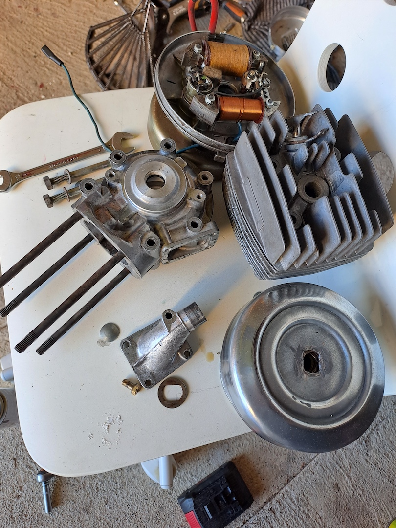 Il est actuellement en pièces pour effectuer le remplacement des roulements de villebrequin, segments, joints spi , joints carter, haut et bas moteur et nettoyage complet . j'attends les roulements pour remonter .