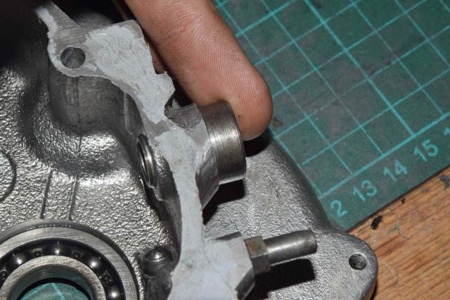 Ainsi lorsque la douille est totalement engagée, elle est assez bien maintenue et n'a pas de jeux. Mais elle est repoussée et à ce moment-là elle prend du jeu de droite à gauche et les vitesses ne passent plus.