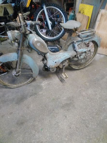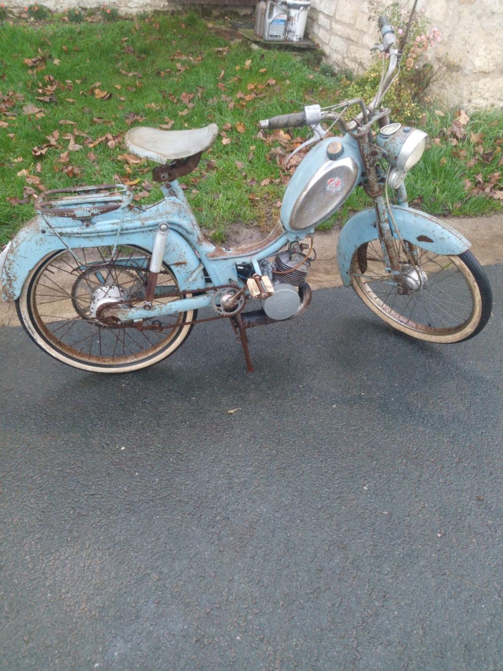 J'ai décidé de remettre en route une BB (V) ou? TLS. Si les spécialistes peuvent m'en dire plus..... Sur la plaque moteur il y a noté BBV (6 janv 1960). Rien vu sur le bras, mais je ne regarde peut être pas à la bonne place. Embrayage centrifuge (2 version?) . Elle est pas mal oxydée, mais relativement complète, et pas du tout "bossée". La pompe est même encore dessus.
