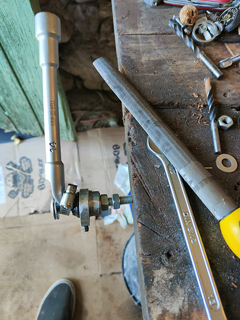 Début de la journée en mettant à la cote la dite clé de 14 avec l'outillage adapté :