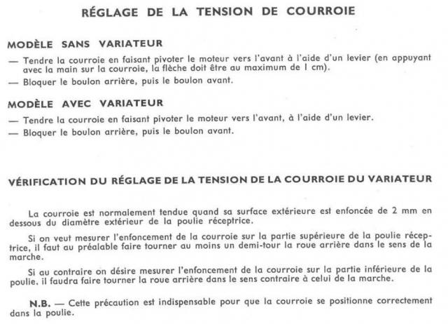 "McBB""McBB"Il faut tendre manuellement la courroie avec un flèche maxi d'1cm. Ne pas la tendre exagérément, sinon, ça détériore les roulements...