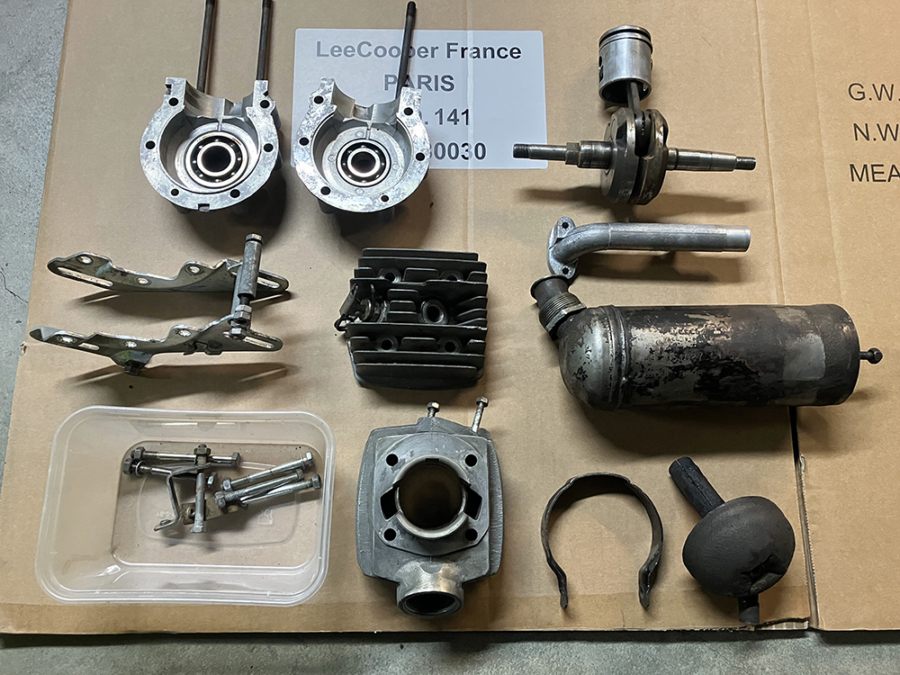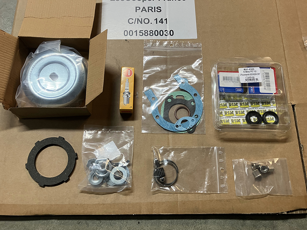 - A part l'embrayage qui avait été démonté par un mécanition du dimanche, le moteur est assez sain notamment l'ensemble cylindre piston en très bon état. Les carters aussi son ok.