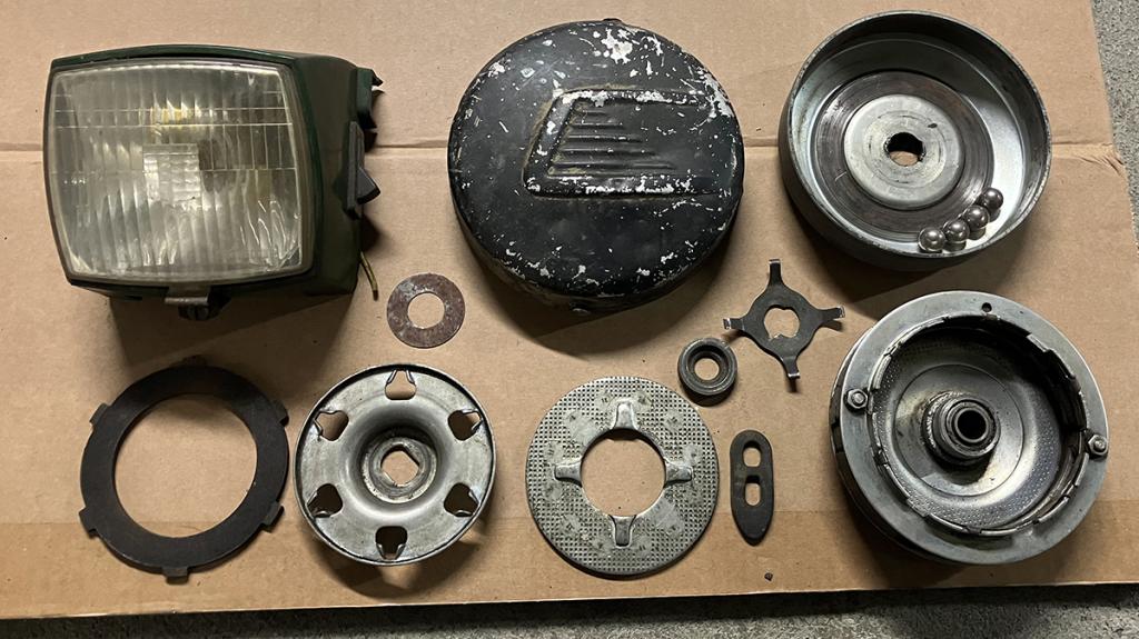 Il manque aussi l'écrou de serrage de l'embrayage sur le vilebrequin sans lequel il ne peut pas tenir sur le moteur (ainsi qu'une rondelle métallique et une rondelle plastique qui vont avec).