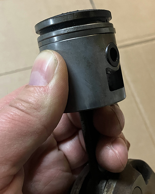 - Au sujet du piston, j’ai retiré un circlip pour pouvoir dégager son axe. J’ai tenté de le pousser à la main en le poussant d’un côté avec une tige cylindrique. Je n’ai pas réussi à le pousser plus de 5 millimètres. Faut il un outil spécifique ou c’est faisable de le sortir juste à la force des mains ? Je m’y prend peut être mal si il y a une technique particulière ?