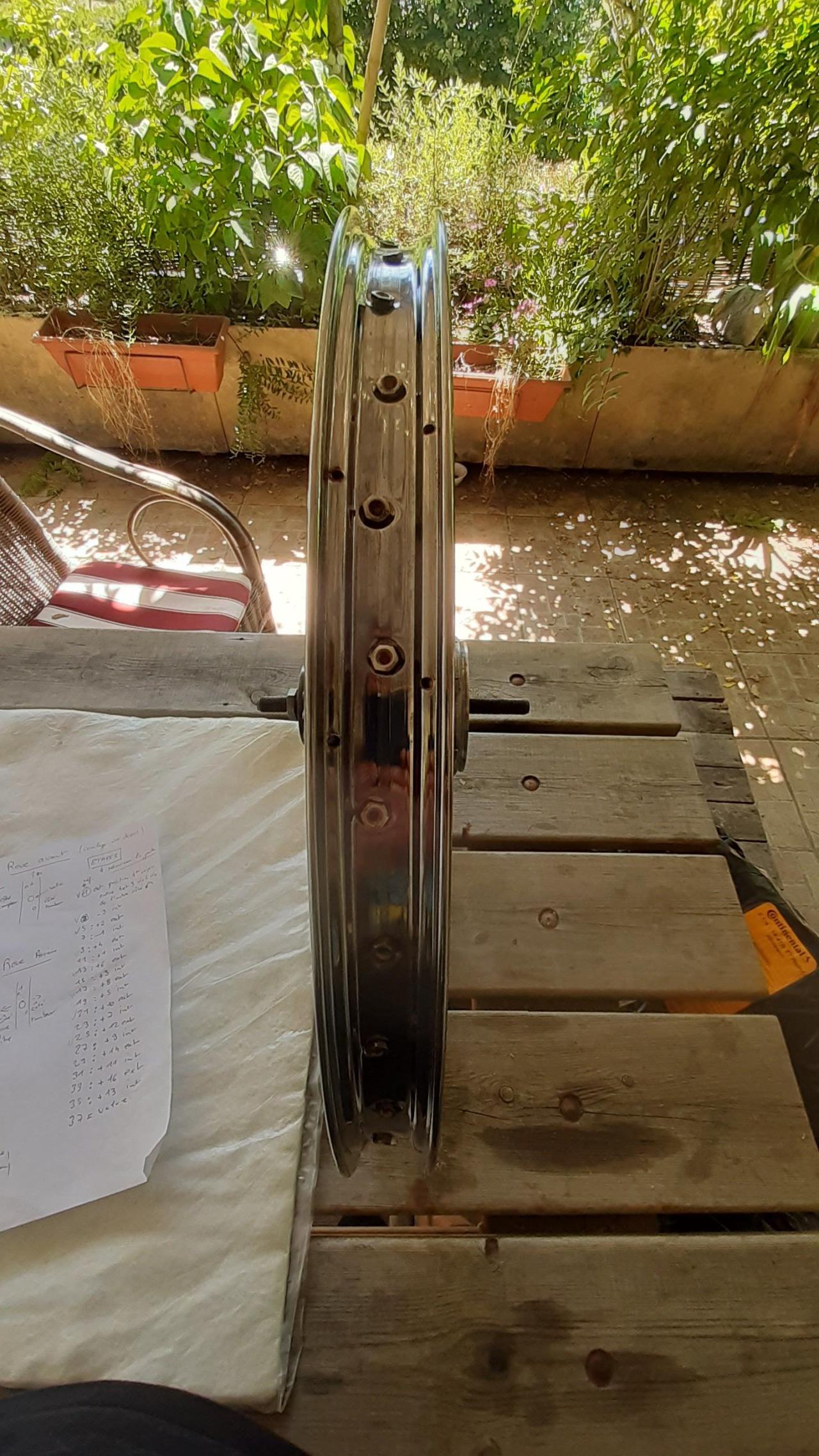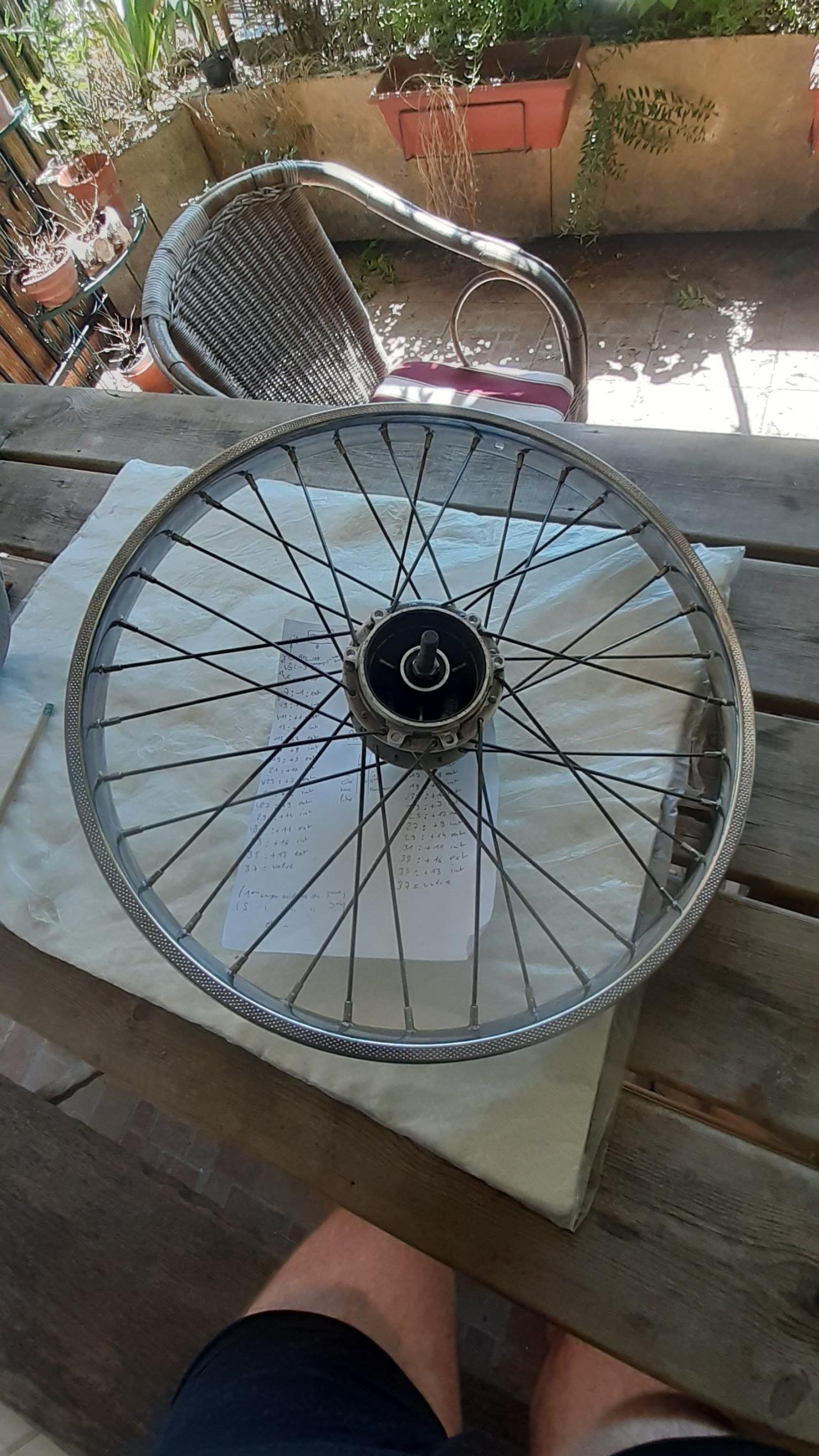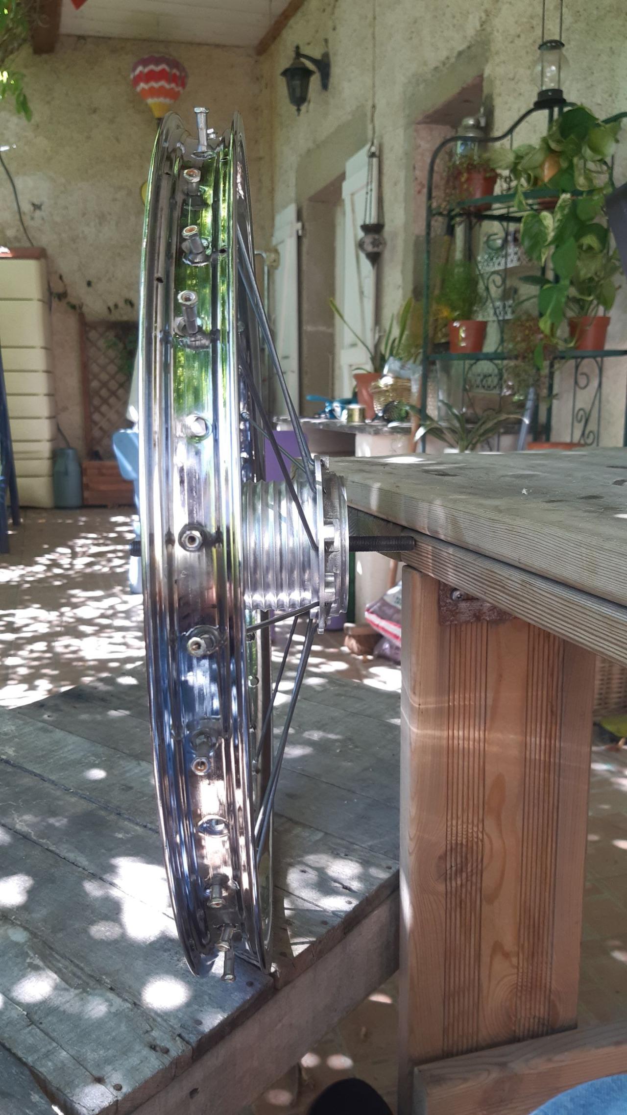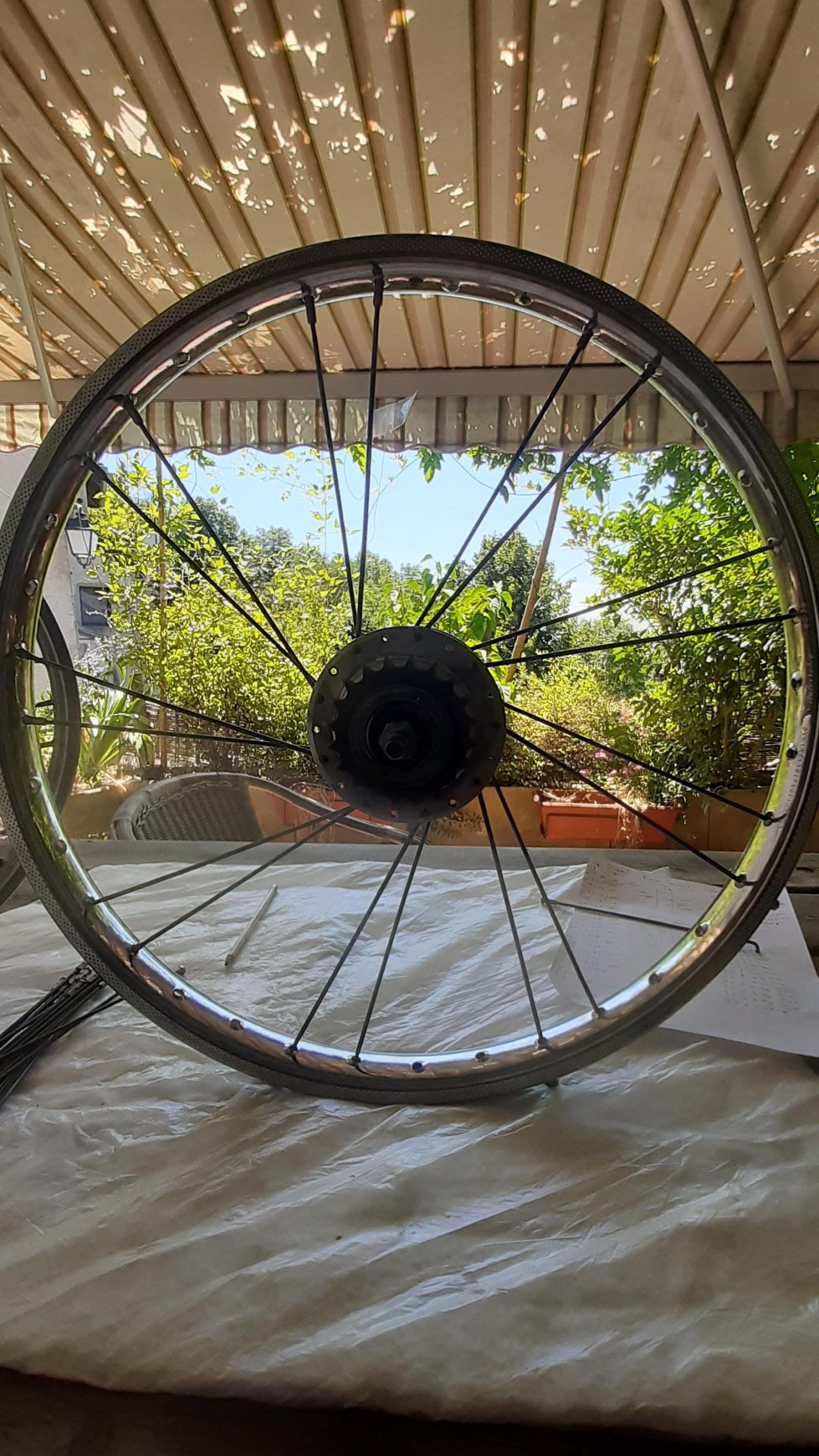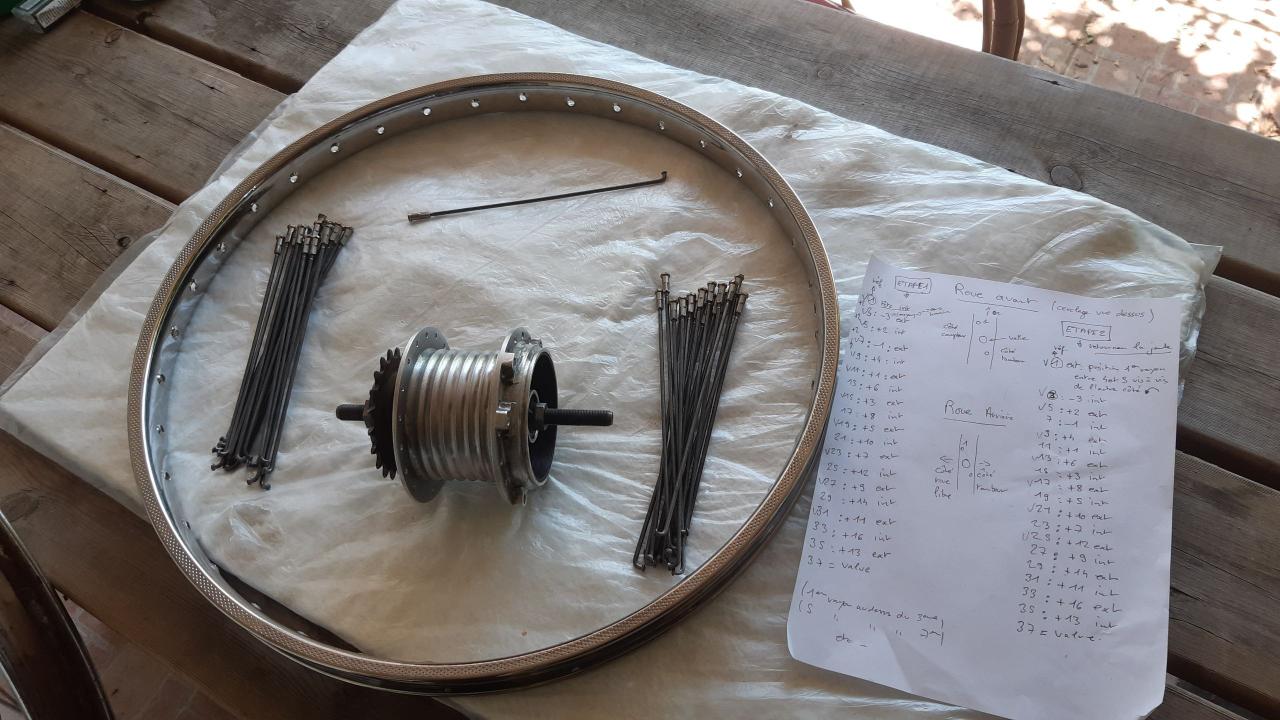 J'avais d'abord commencé la roue avant puis du commander des rayons parce que les trous du nouveau cerclage ont un diamètre plus grand.