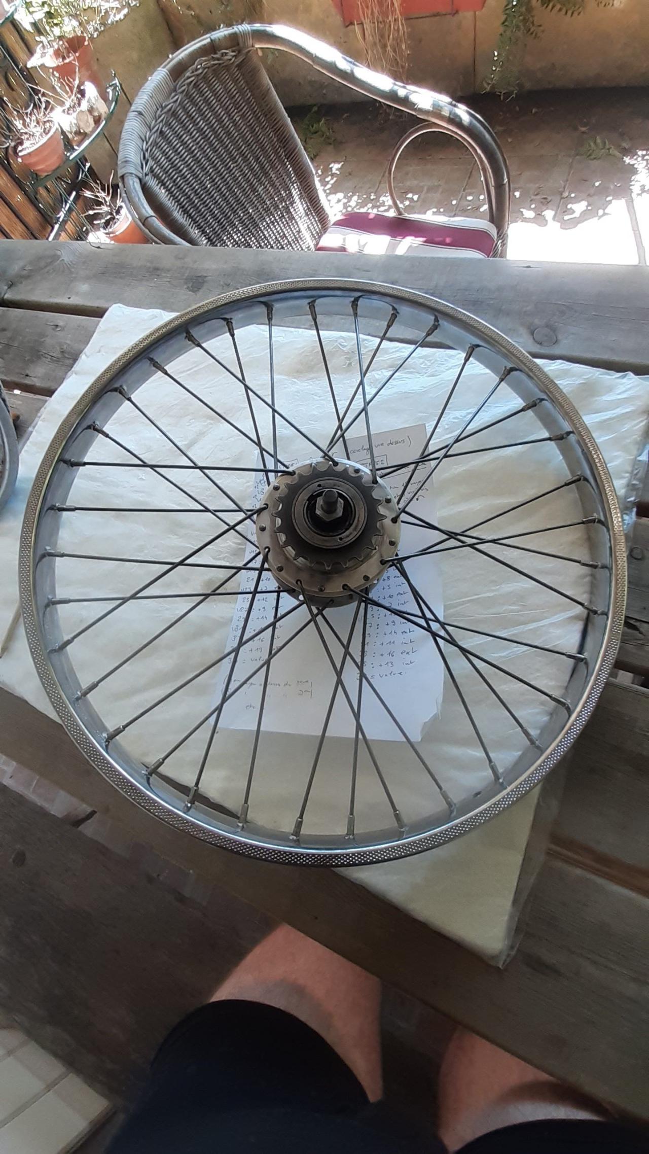 Alors j'ai entamé la roue arrière qui elle a des rayons + écrous plus gros que je peux réutiliser sur le nouveau cerclage.