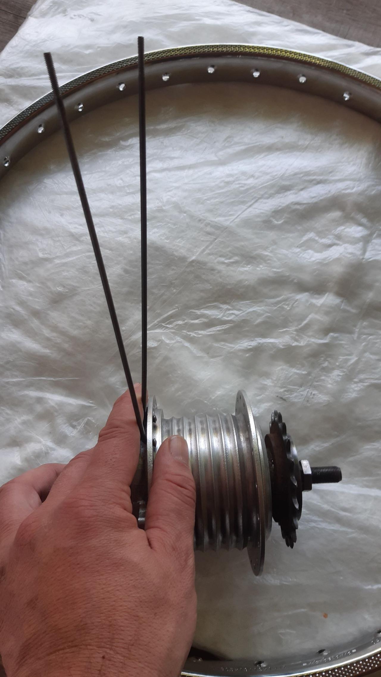 Pour les rayons de queue droite/gauche (9 de chaque côté pour une jante 36 trous), pas de problème.