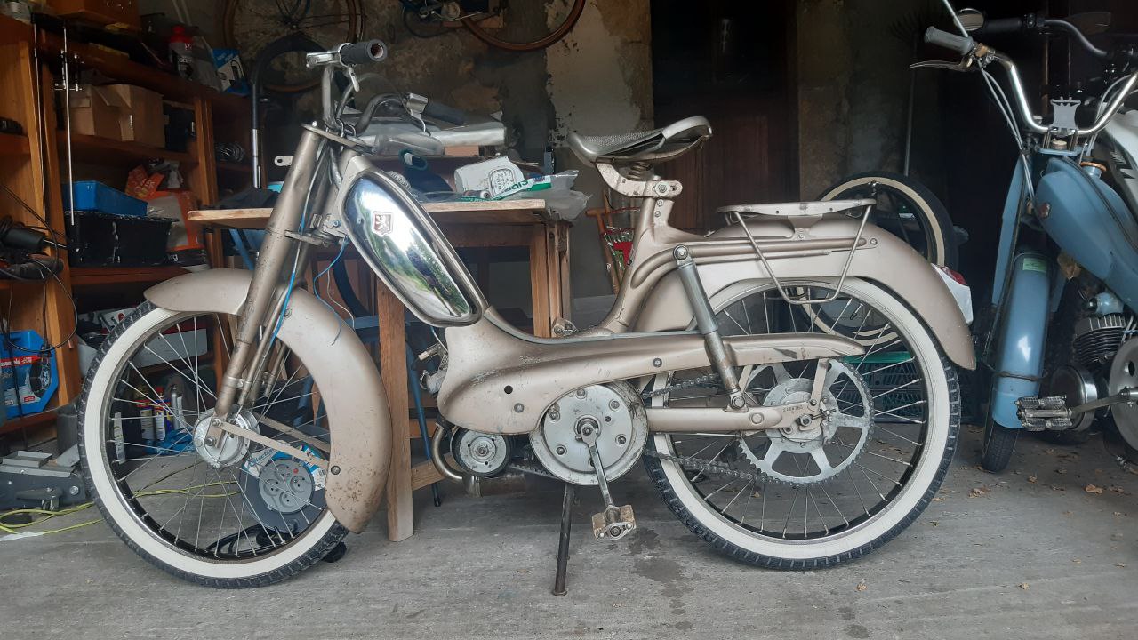 Chez motobec' Ils avaient "rafraichi "un modèle l' AV79 en lui collant un phare rectangulaire et une boite à outils en triangle , l'ensemble a une gueule d'enfer avec cet énorme garde boue arrière : j'adore!
