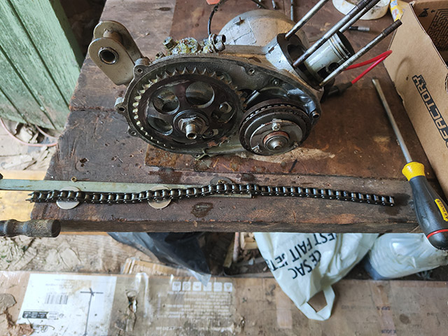 La première fois que j'ai ouvert le carter, après vidange de la mayonnaise,j'ai constaté qu'une partie de la couronne et de la chaîne était resté longtemps dans l'eau décantée.