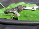 J' ai acheté sur la bourse de Fouras, un petit levier chromé de marque Simplex, avec 2 attaches, 2 renvois de cable dont un occupé par un échantillon, le repose pied orientable.
