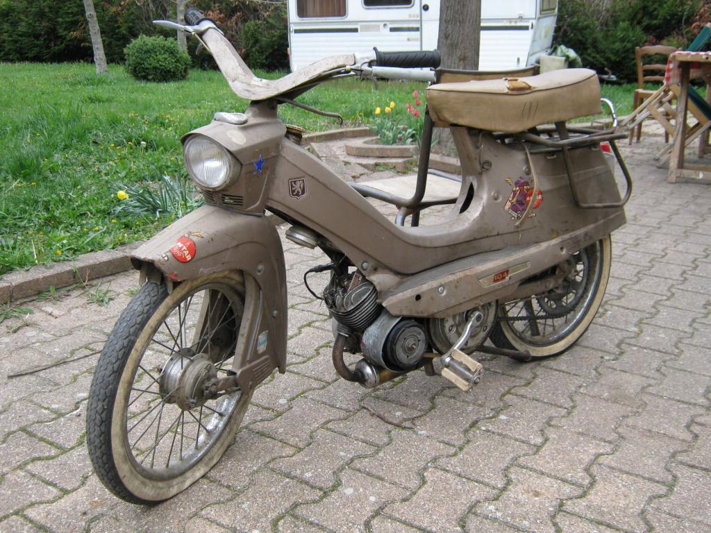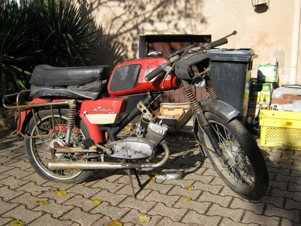 ).Un rallye SPR avec pas mal de rouille, le moteur est bloqué (normal y manque la pipe) pas d’allumage sinon le reste est presque complet. Pas trop cher, 120 euros avec une partie cycle de country