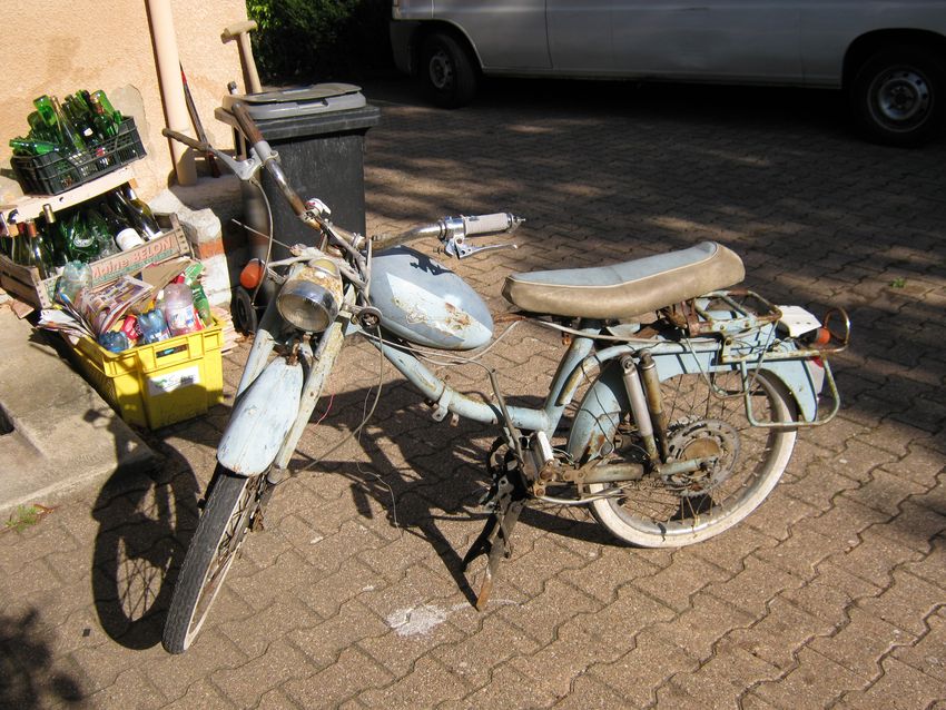 Un rallye SPR avec pas mal de rouille, le moteur est bloqué (normal y manque la pipe) pas d’allumage sinon le reste est presque complet. Pas trop cher, 120 euros avec une partie cycle de country