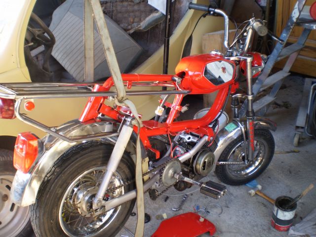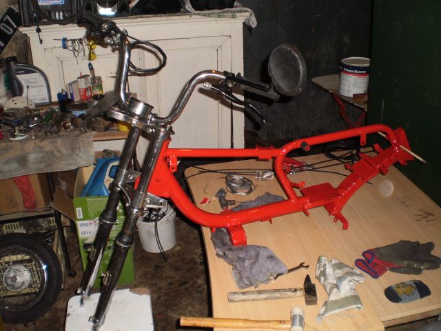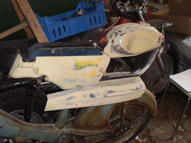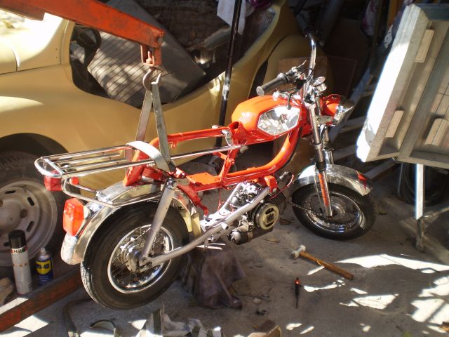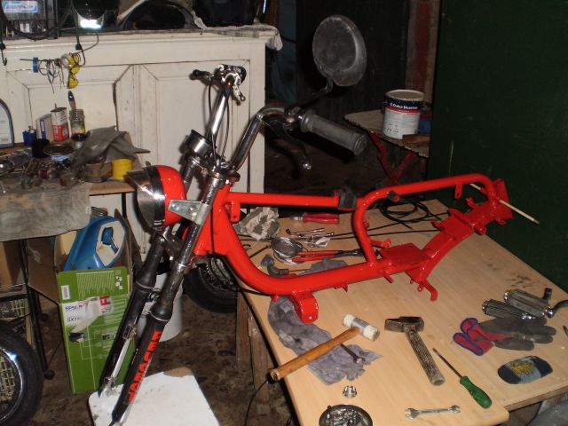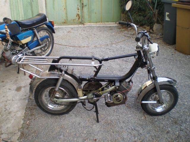 la GT 10 un peu , toute la partie cycle est remonté sauf la selle , il manque encore un ressort de béquille et deux câbles , (starter et gaz) ....il faut que je branche les lumières à brancher et poser un interrupteur