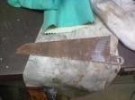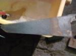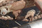 Un peu déçu je m'empare d'un petit bout de bois et je frotte doucement cete 'rogntudju' de piece a derouiller. Et la miracle tout se decolle et le tôle a nu apparait bien brillante. Il restait de la peinture sous la rouille et ce le donne l'impression qu'il ne se passe rien.