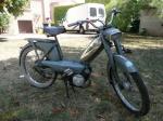La mienne est entièrement recouverte d'une peinture passée grossièrement au pinceau de couleur claire. Seul les chromes du réservoir ont été respectés. Je n'arrive pas a retrouver la couleur d'origine en grattant doucement. Je suppose que cela devait être une couleur claire.