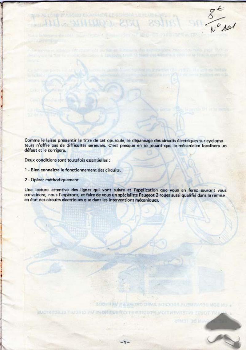 Bonjour à tous, voici les scans et le pdf de "Le dépannage des circuits électriques sur cyclomoteurs".