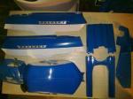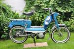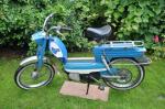 1) L'état initial: complet mais ne roulait pas. Après démontage carburateur et embrayage, calage de l'allumage et réglage de l'écartement des rupteurs, décalaminage du moteur, changement des joints et j'en passe, le Peugeot démarre au quart de tour. De plus, sur les photos ça ne se voit pas mais il y avait 3 ou 4 sortes de bleu différents et toutes les pièces ou presque étaient trouées ou fendues.