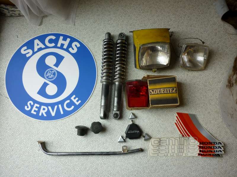 et comme j'avait deja recupéré une batterie, un phare, un compteur et un top case, il ne me manque plus grand chose.. la poignée gauche, un klaxon et deux pneus et chambres a air.