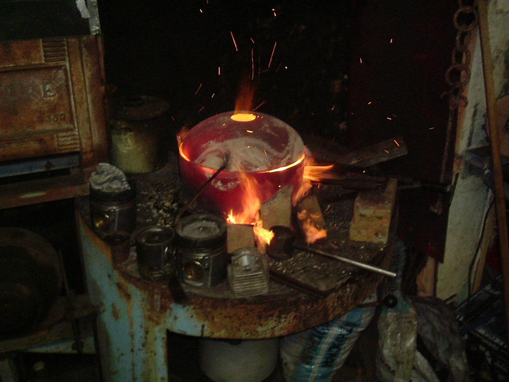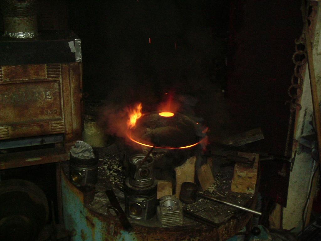 quand je coules des pistons c est en general plus dur la temperature de fusion est plus elevée que l alu carter qui lui a une temperature plus haute que les alus basiques ceci etant du au elements ajoutés dans les aliages et nuances !
