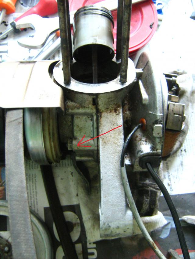 celà dit, je commence a bloquer un peu : j'ai retiré le volant magnétique, ainsi que le stator, mais pour séparer le bas moteur en deux, il faut bien retirer 6 vis (flèche rouge sur la photo), mais je n'y ai pas accès de ce coté...