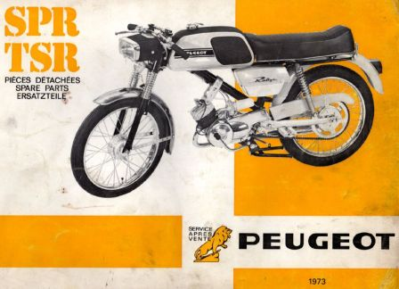 Sur la page de garde du manuel de pièces détachées de 1973, je reconnais mon Rallye, (SPR ou TSR), avec fourche a ressorts, garde boue arrondi, pneu avant a lignes(une savonette), frein arrière a droite, phare avant rectangulaire(avec sa peinture noire granulée), feu arrière carré(celui qui casse toujours), pédales Lyotard blanches déséquilibrées(qui se repositionnent toujours a plat), carburateur Gurtner 12/14 avec filtre a air allongé(bisoté pour passer au niveau du cadre). En rapport a la date de mon carbu(9/72), il semblerait que mon Rallye TSR 6 008 755 soit un des premiers, fin 72 début 73, mutation(stock garde boue arrondi) entre le TS3 et le Rallye au garde boue carré? Je pars a la fin du mois pour 4 mois a l'étranger, mais a mon retour j'aimerais bien faire un petit frère SPR jaune a ma TSR.