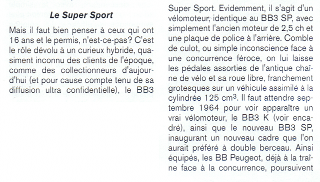 Pour remplacer le BB3SS qui n'est qu'un BB3SP du modèle précédent avec le combiné code/phare et la plaque des mines rivée sur le cadre comme la règlementation l'impose, Peugeot sort le BB3K et propose enfin les vitesses au pied, un kick et le frein arrière au pied.