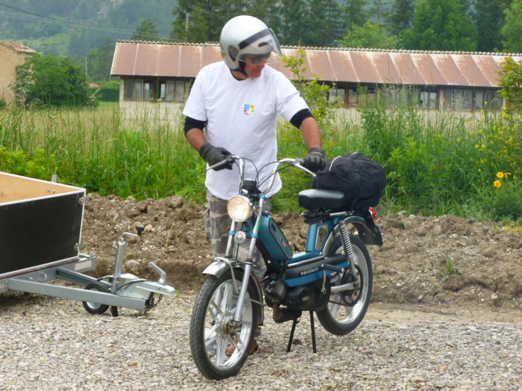 A la descente j'ai doublé toutes les voitures compteur bloqué sur 80....Arrivé en bas, mon brave 103 n'en pouvait plus, les vis platinées et le condensateur etaient morts...Le soir au camping j'ai changé tout ça. A noter le kit airsal qui n'avait que 200 km n'a pas serré. Je conseille donc ce kit T6 de chez Airsal, c'est du robuste. Il faisait 35 degrés.Mélange à 6%, huile de synthèse.