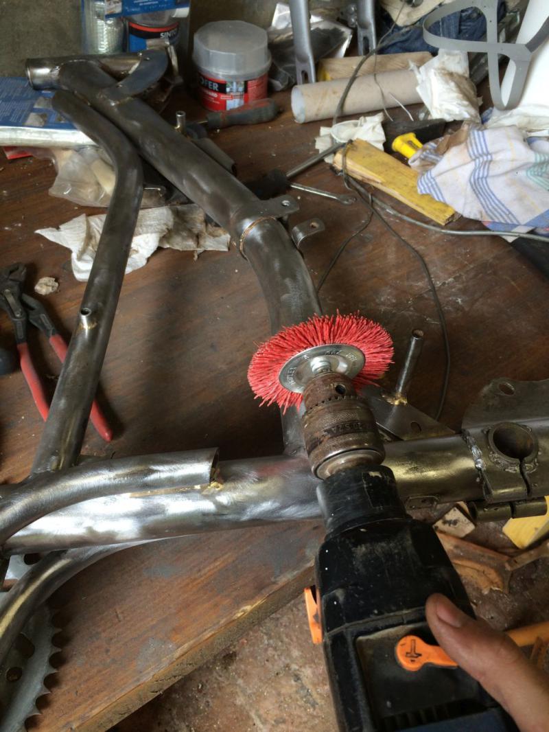 Et le dernier polissage avec une brosse nylon à apposer sur ma perceuse AEG pour retirer les dernières imperfections de peintures et de rouille :
