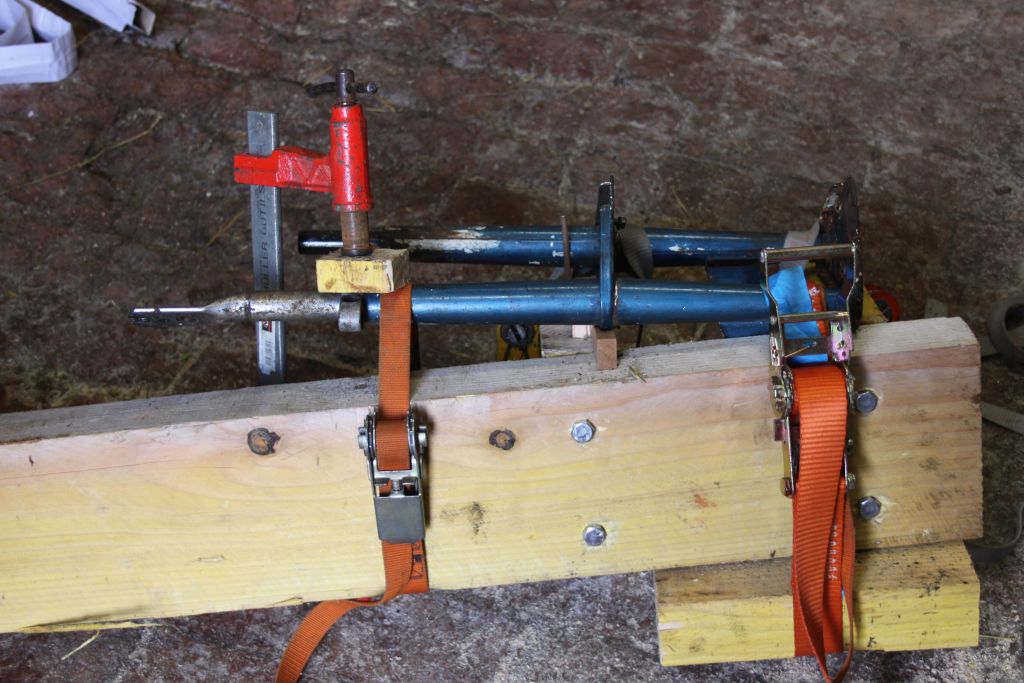 Pendant que le bain tourne, je me charge du redressage de la fourche avec un marbre fait maison, opération réussie :