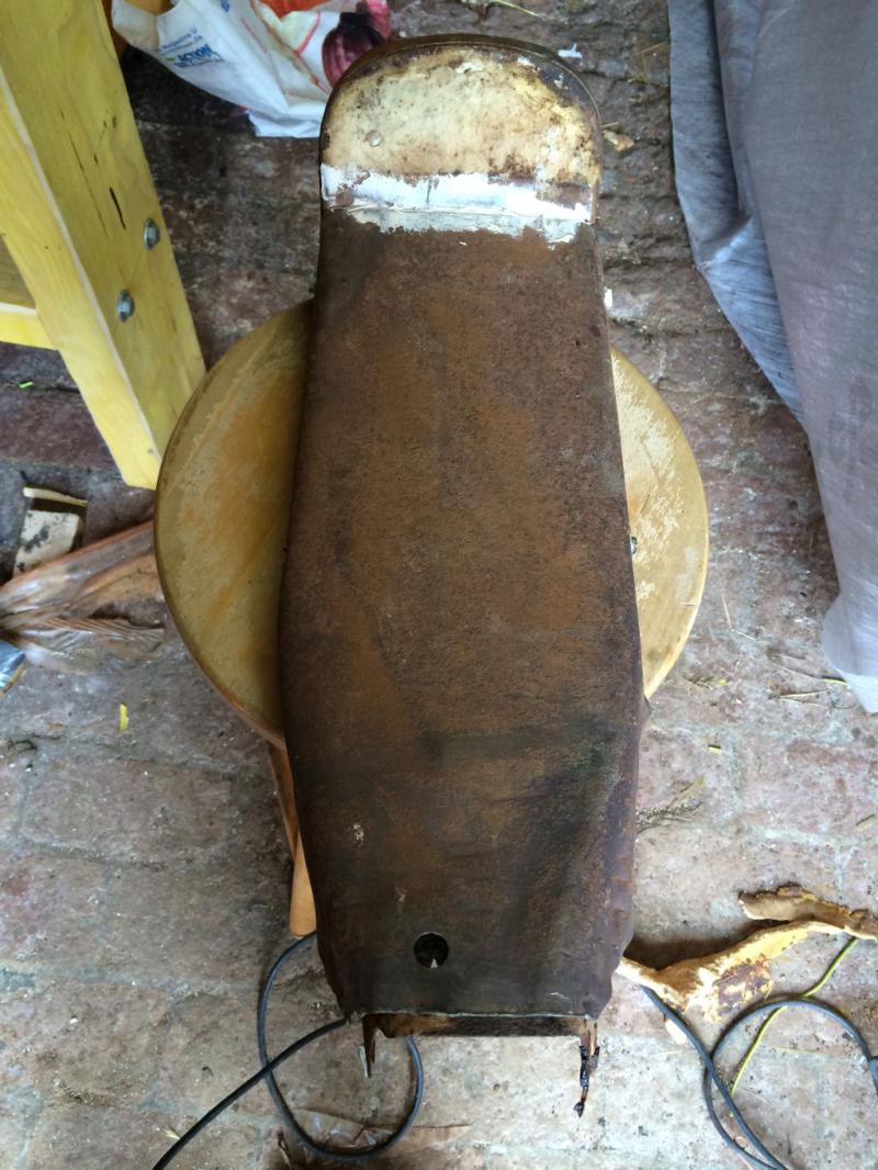 Alors la restauration continue, premièrement par la base de selle que j'ai fait à l'enclume avec un plaque de métal.