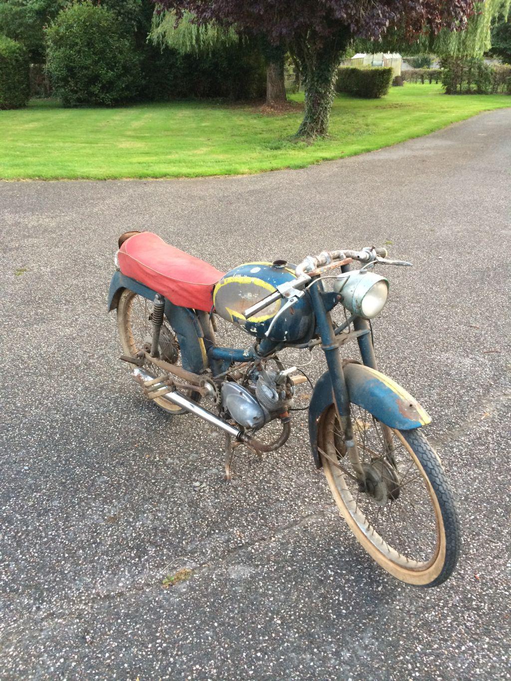 Le gars qui me l'a vendu m'a expliqué qu'elle appartenait à son grand père qui était collectionneur de cyclo qui l'avait acheté il y a des années pour la retaper, le vendeur avait la trentaine et à toujours connu le véhicule dans la grange.