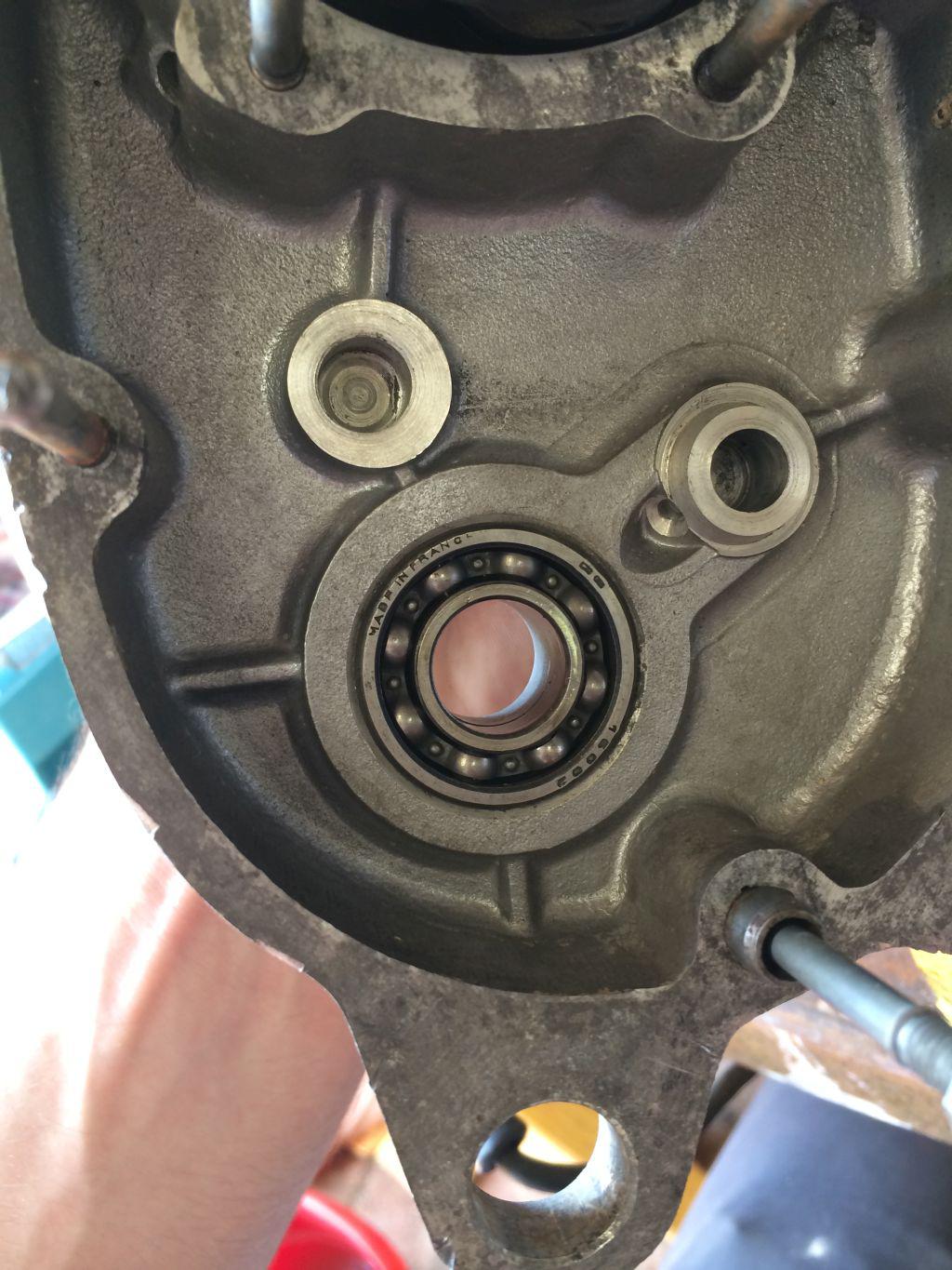 Le moteur est bien évidemment déposé mais j'arrive toujours pas à retirer les roulements du carter..