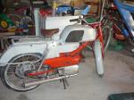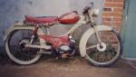 Il y a aussi eu ces versions en "utilitaire/tourisme", avec un reservoir de BB RS. Certains avaient le moteur de VRS a clapets, certains avaient des moteurs de BB normaux, et certains one même eu le moteur 103. Les noms des modèles etaient les 104 R, 104 T. Je n'ai pas vraiment compris leur système de nom, certains avaient "Peugeot 104 R" et d'autres avaient "Peugeot BB" sur les carters lateraux, donc je m'excuses mais je mettrais juste des photos... Remarquez le cache volant en alu qui est un peu different de ceux sur nos BB!
