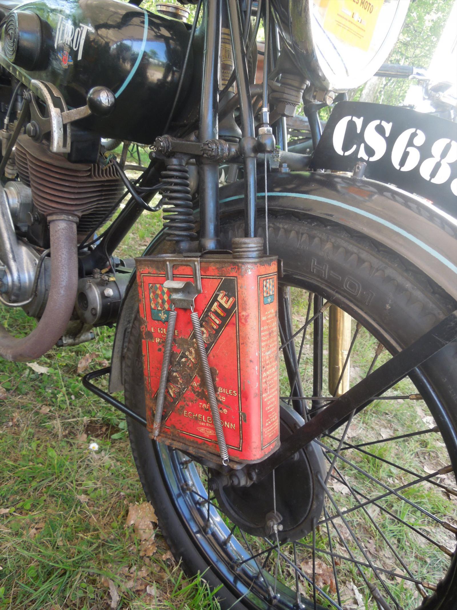 Ca y est, mes pneus sont arrivés et l'avant deja monté. Il ne me manque plus que des sacoches et un bidon d'huile pour accrocher le long de La Fourche. Il me faudrait le support . Existe t il des plans qui permettrait d'en fabriquer un, voire des photos pour le faire une idée ?