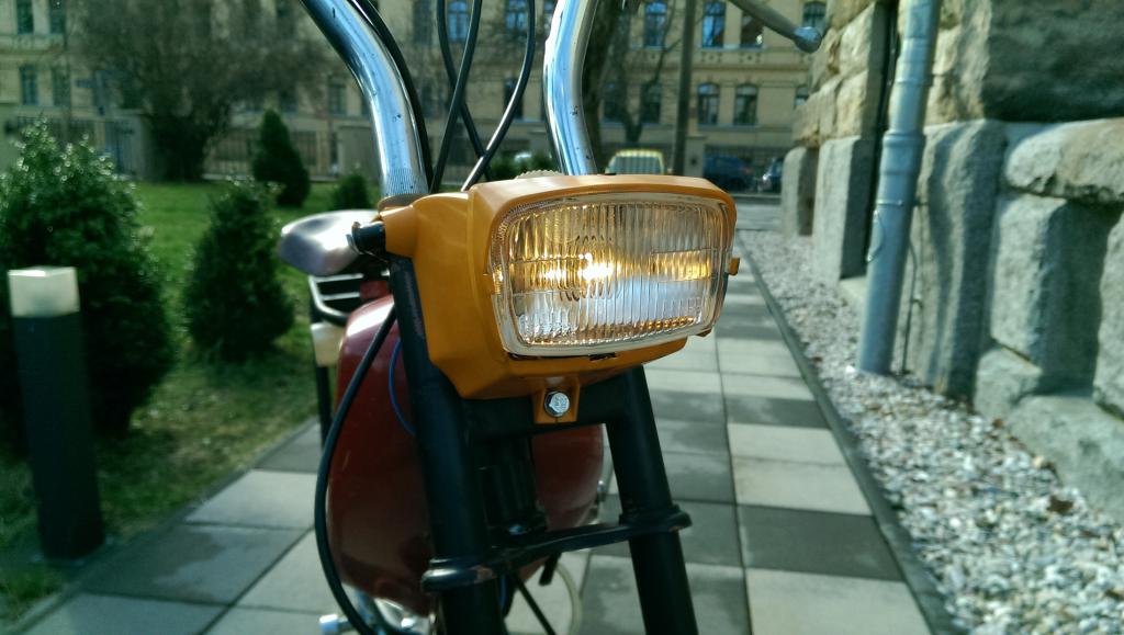 Trouvé une phare avant, encore à peindre en noir. Et les gardes boues. Peut-être en bois? Comme dit, customisé...